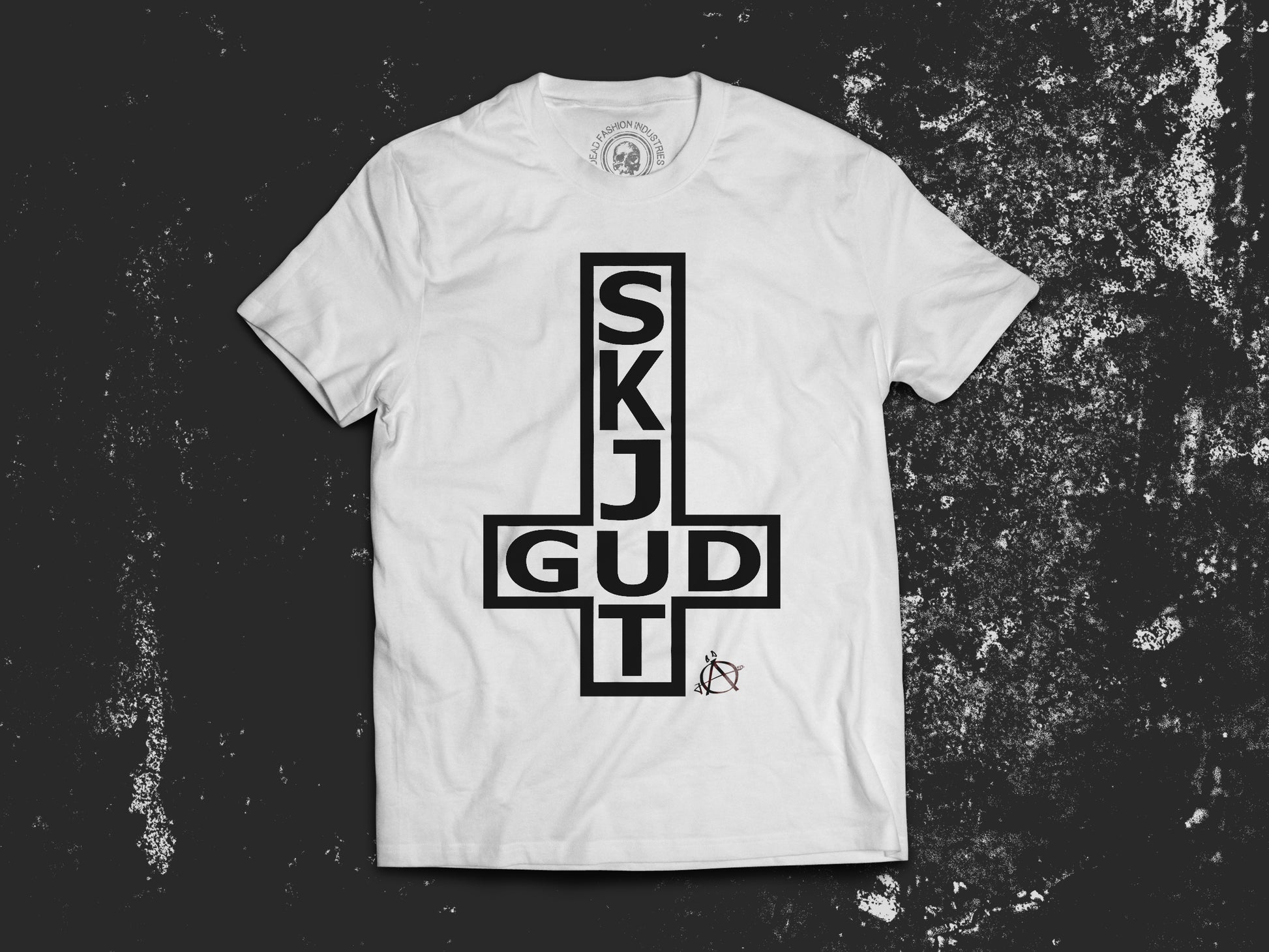 "SKJUT GUD" This timeless anti-religion design is a collaboration between Robban Bäck and Dead Fashion Industries. The message is clear: religion is poison! Make sure to grab your ex of this masterpiece.